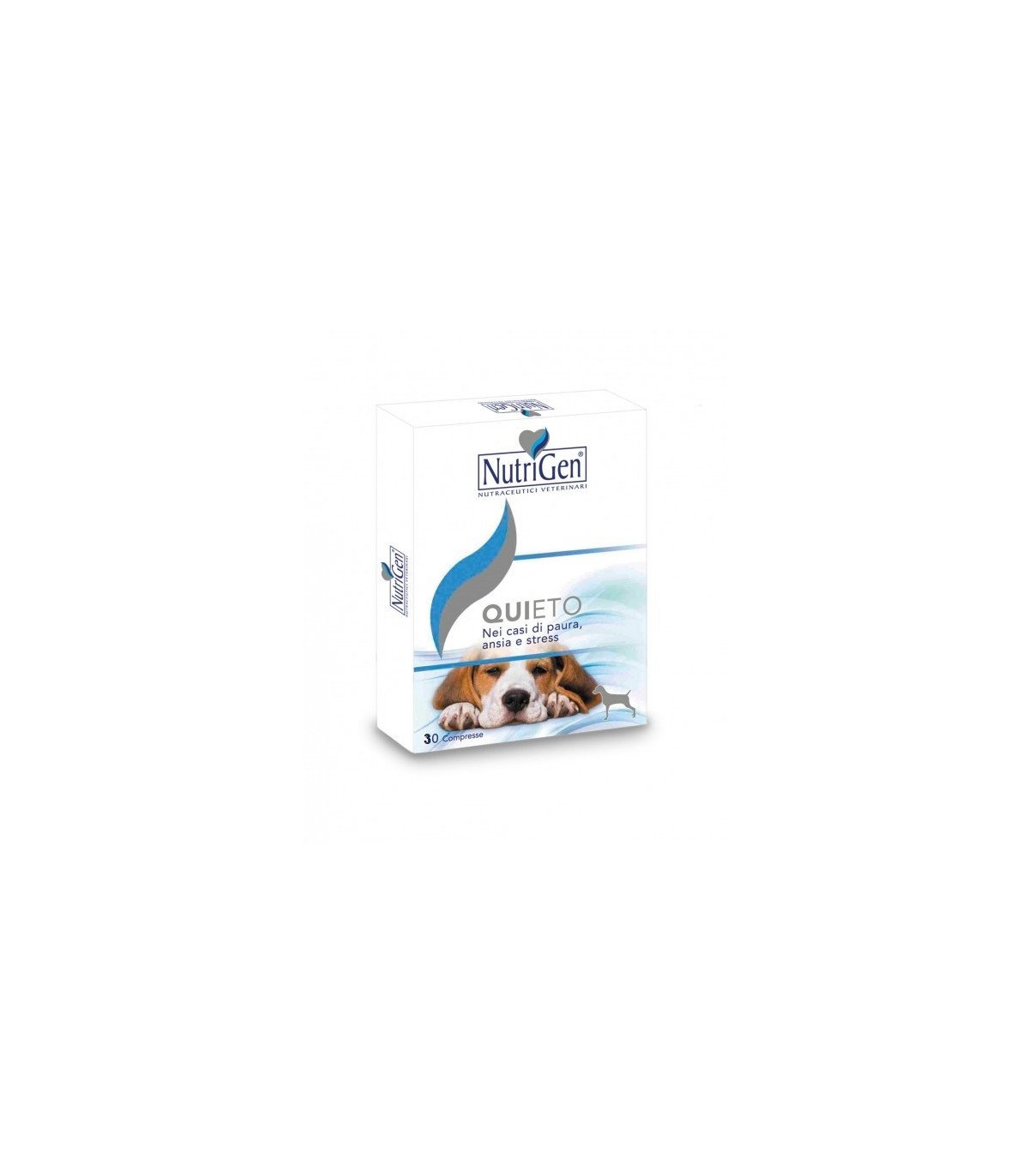 Quietoè utilizzato nei casi di paura (temporali, fuochi d'artificio, ecc..), ansia (separazione anche breve, cambio di proprietario e di abitazione, distacco dalla madre), prima delle visite dal veterinario, prima del lavaggio e della toelettatura, prima di un viaggio per ridurre il mal d'auto, durante la permanenza in canili o in ambienti angusti quali i kennel. Quietoè di supporto alle terapie comportamentali e contribuisce a ridurre fenomeni di aggressività. Agisce principalmente sulla naturale produzione di Seretonina e sulla sua sintesi. La Seretonina ha un effetto rilassante e calmante non sedativo e contribuisce ad un generale stato di benessere. La L-Teaninaè nota per le sue capacità di ridurre lo stress mentale. Le vitamine del gruppo B contenute contribuiscono a migliorare i disturbi nervosi.