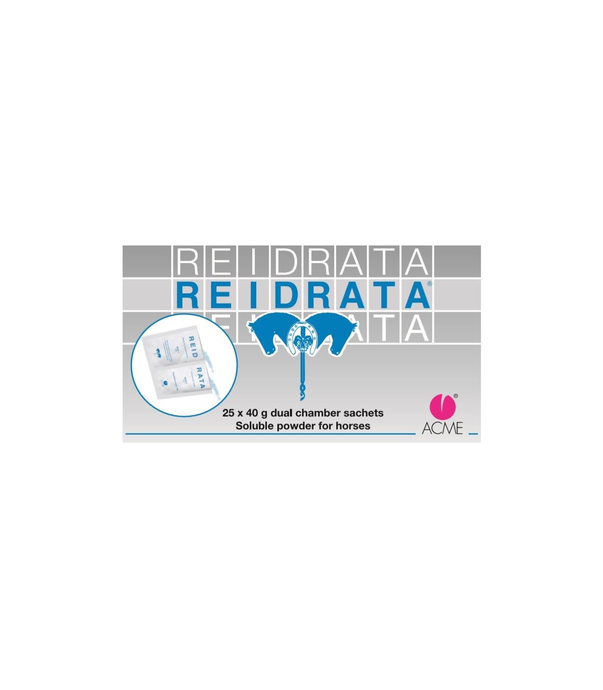 REIDRATA®è un reidratante tamponato che apporta gli elettroliti indispensabili per prevenire e correggere gli stati di disidratazione del cavallo sportivo. Il CLORURO DI SODIO esercita un'azione osmotica in grado di trattenere acqua nei tessuti. Il BICARBONATO DI SODIO ripristina le riserve alcaline e costituisce il più importante sistema tampone dell'organismo. Il POTASSIO CITRATO ripristina le riserve di potassio