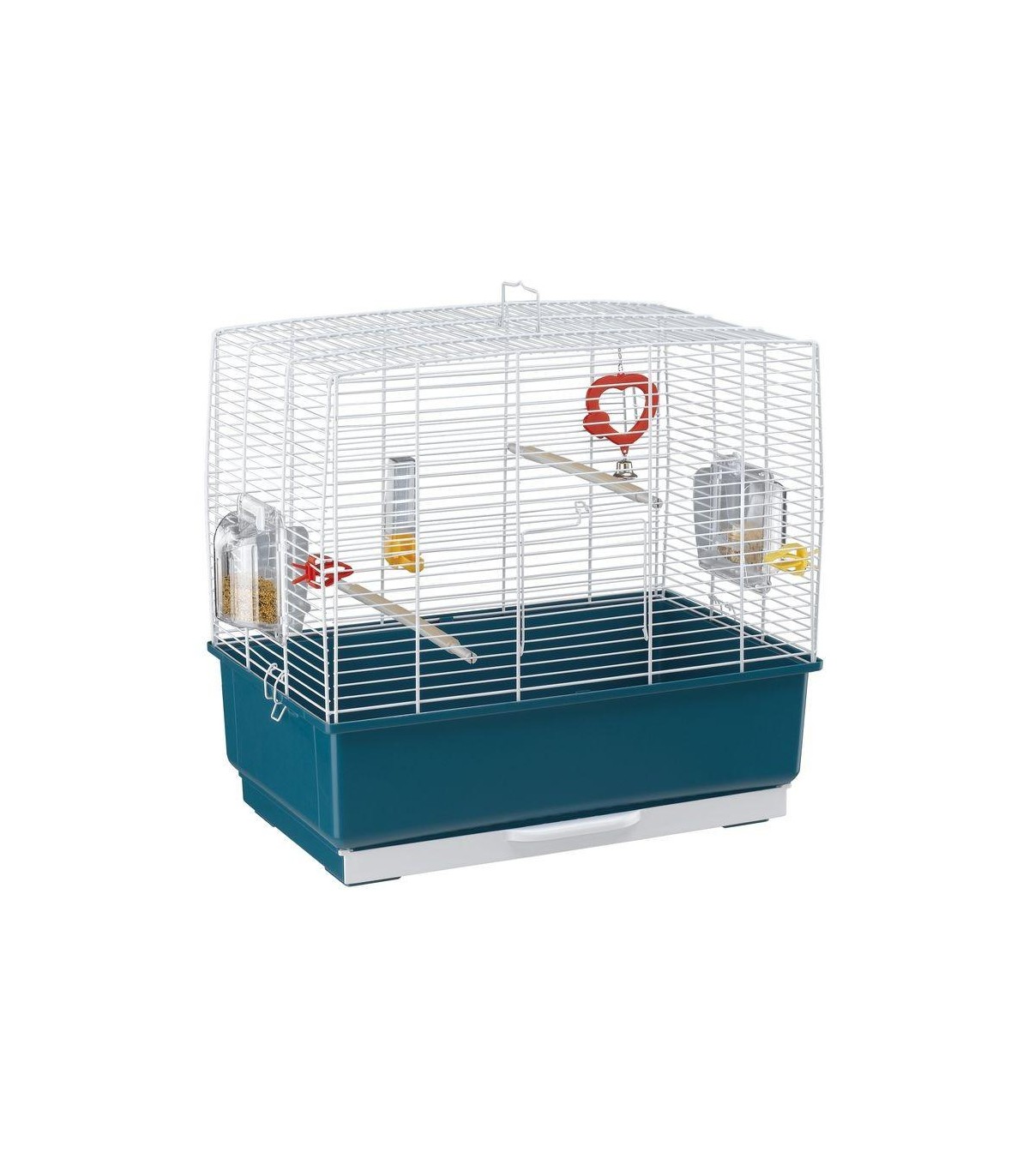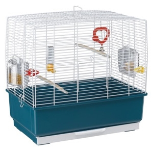 Rekord 3 è una gabbia a base rettangolare di medie dimensioni, ideale per canarini, esotici o altri piccoli uccelli. Completa di accessori quali posatoi in plastica ricoperti in gomma, mangiatoie girevoli ed estraibili Brava 2, beverino, pinze per il cibo e specchio-gioco. Di facile manutenzione, la gabbia si pulisce in un attimo grazie al fondo in plastica con cassetto raccogli sporco estraibile; il fondo è inoltre particolarmente capiente per impedire allo sporco di fuoriuscire. Potrete trovare la gabbia per uccelli Rekord 3 in due versioni: con rete metallica verniciata di colore bianco oppure nero.