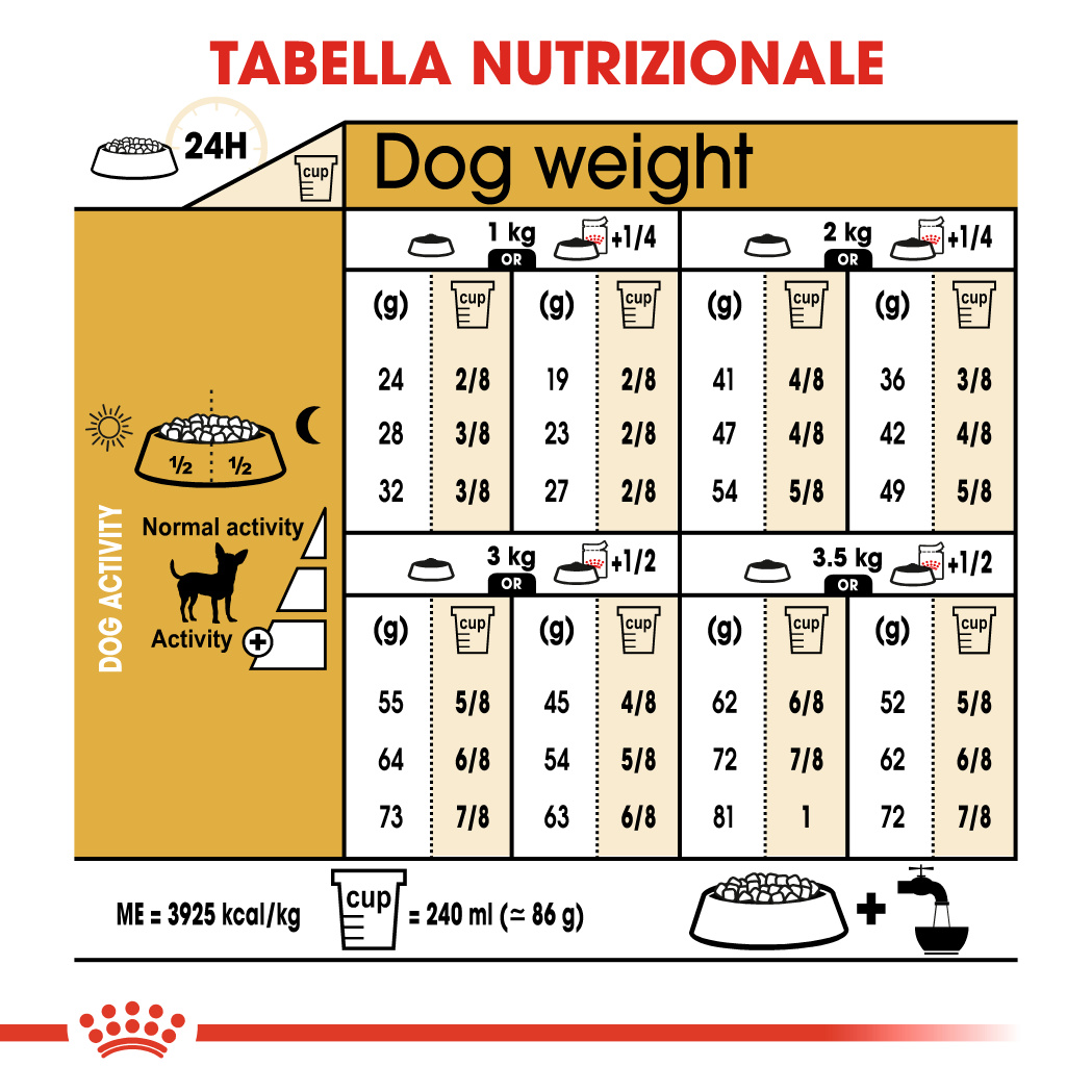 - Super appetibilità: stimola l' appetito dei Chihuahua più capricciosi, grazie ad una formulazione esclusiva, con aromi naturali selezionati, e alla specifica forma e dimensione della crocchetta.