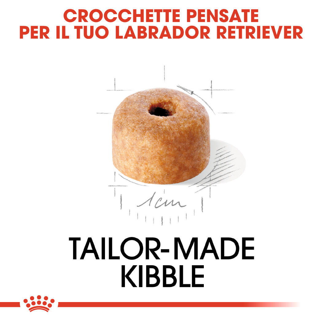 Crocchette per cani Royal Canin Breed Labrador Retriever Junior, specifiche per la razza Labrador, fino ai 15 mesi di vita. Per uno sviluppo scheletrico controllato ed equilibrato.