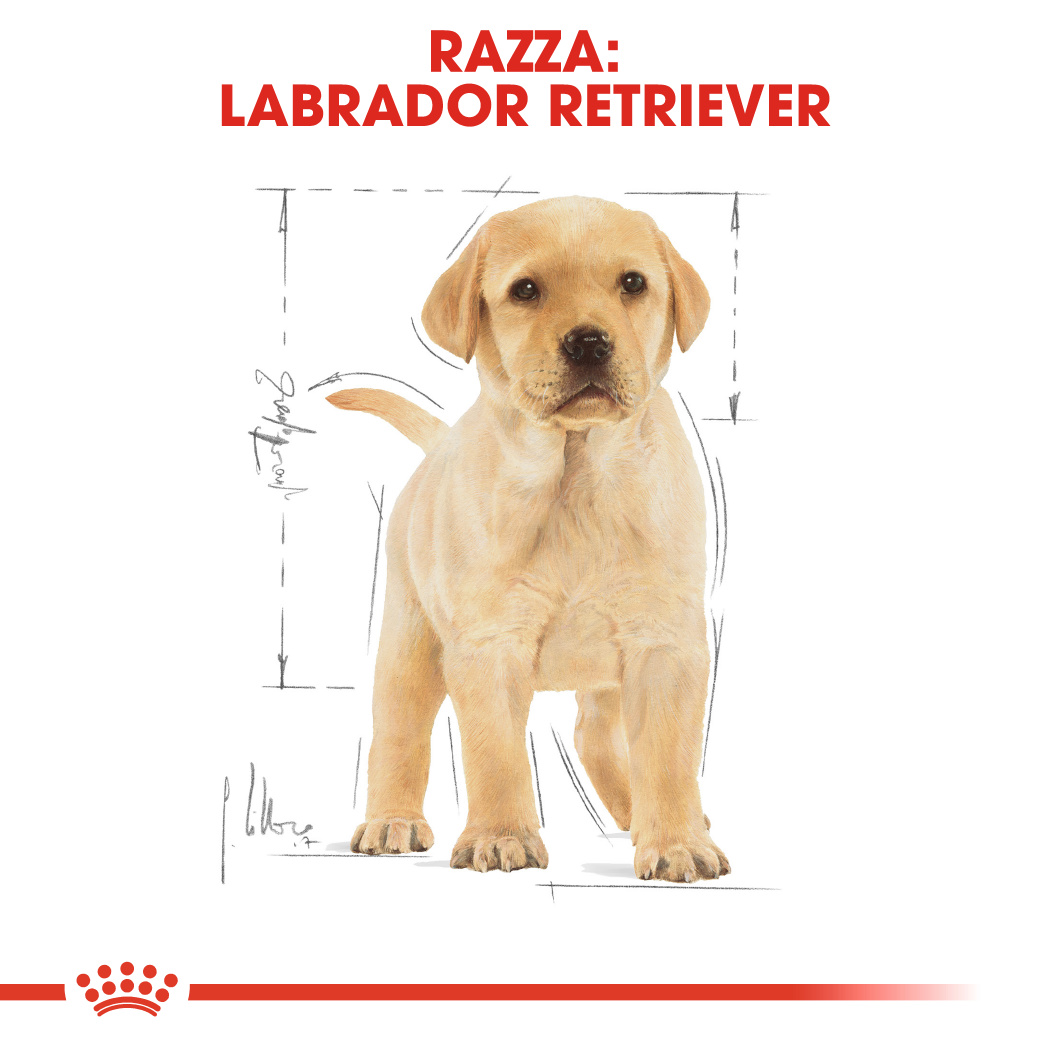 Il cibo secco Royal Canin Breed Labrador Retriever Junior è appositamente calibrato sul fabbisogno nutritivo dei Labrador Retriever fino ai 15 mesi: