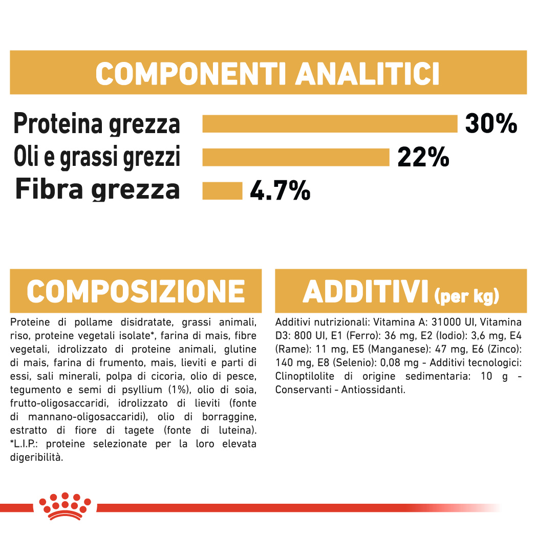 Eccellente alimento specifico per la razza cui è dedicato. Di qualità e molto equilibrato.