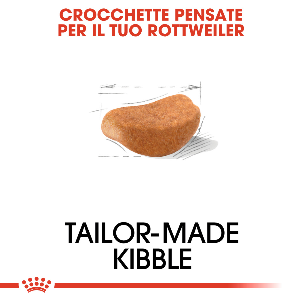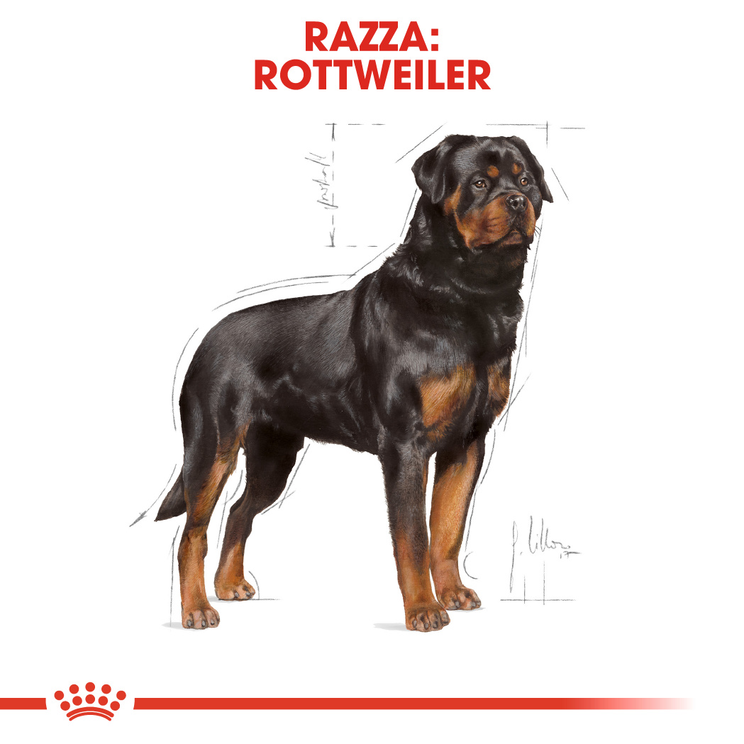Il cibo secco Royal Canin Breed Rottweiler Adult è appositamente pensato per soddisfare il fabbisogno nutrizionale dei Rottweiler a partire dai 18 mesi d' età: