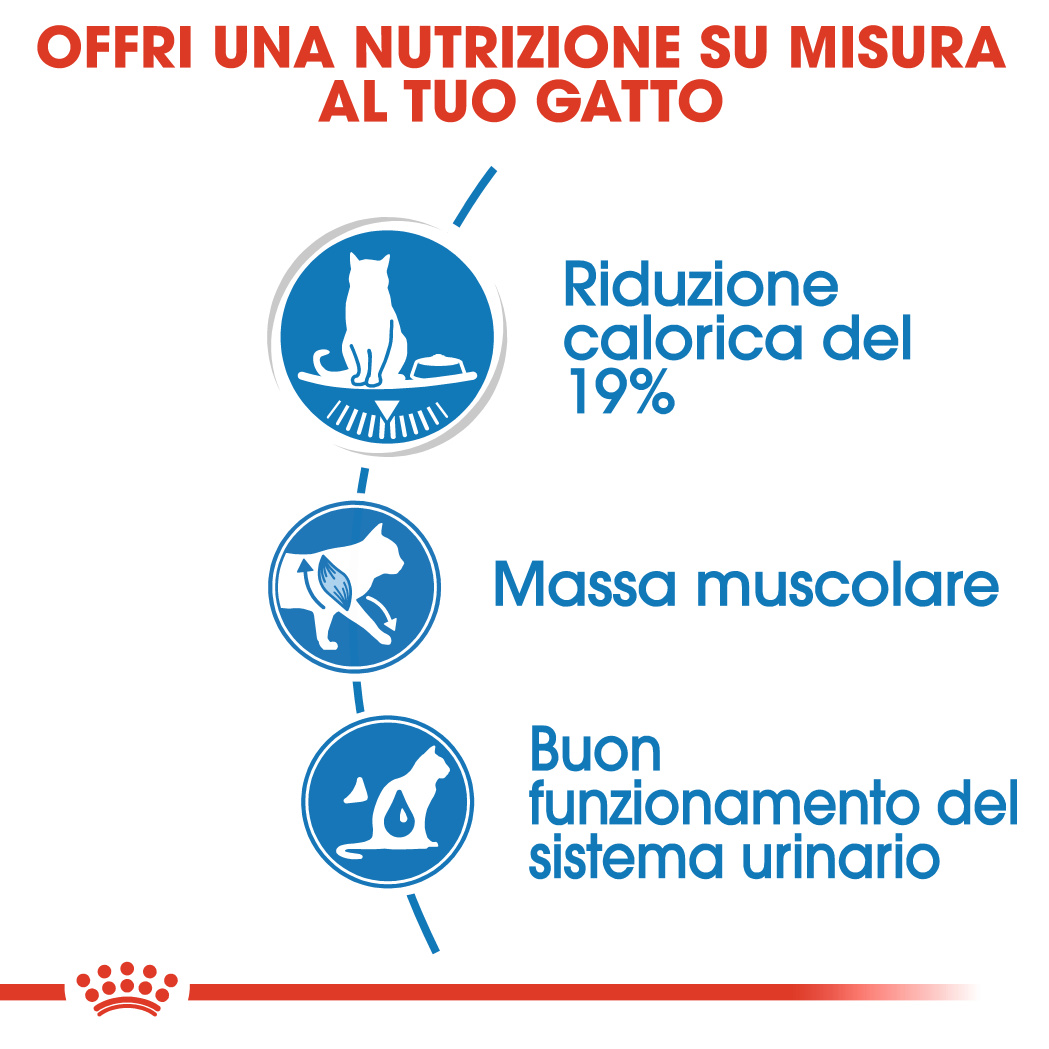 - un aumento di peso ? solitamente la conseguenza di uno squilibrio tra l' assunzione di calorie (alimentazione troppo abbondante o a esagerato contenuto energetico) e il consumo delle stesse (p. es. mancanza di movimento fisico). Royal Canin Ultra Light aiuta a ridurre la spontanea assunzione di calorie da parte del gatto. La L-carnitina incentiva l' organismo a bruciare ottimamente i grassi