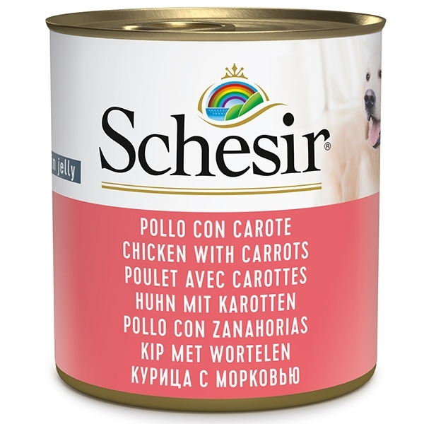 Somministrare fino a 2 lattine al giorno, in associazione con alimenti umidi completi e/o croccantini Schesir.