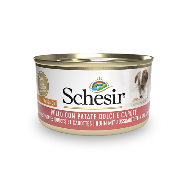 Una ricetta Schesir a base di pollo, patate dolci e carote, completata da una salsa vellutata e irresistibile. Un pasto sfizioso che stuzzicher ancor di pi la voglia di gusto naturale del tuo cane!