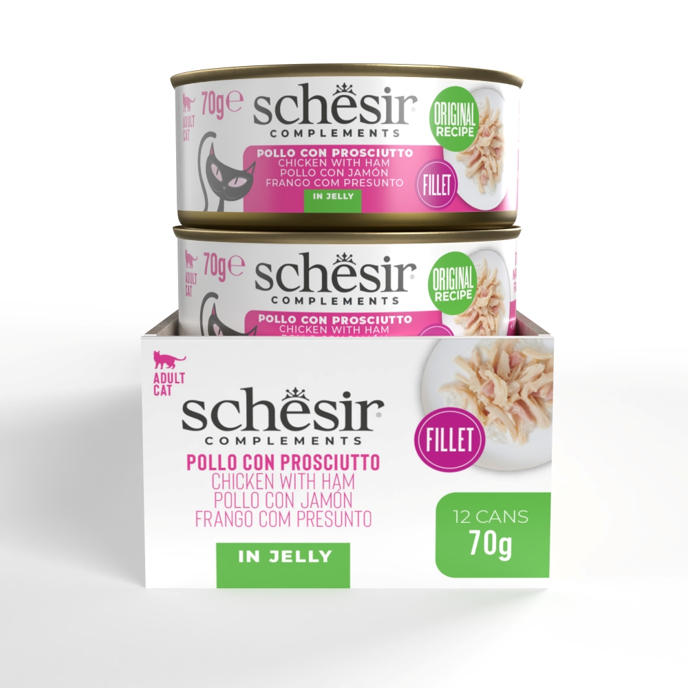 Schesir Complements Filetto Di Pollo Con Prosciutto in Jelly 70g Scatoletta Per Gatti