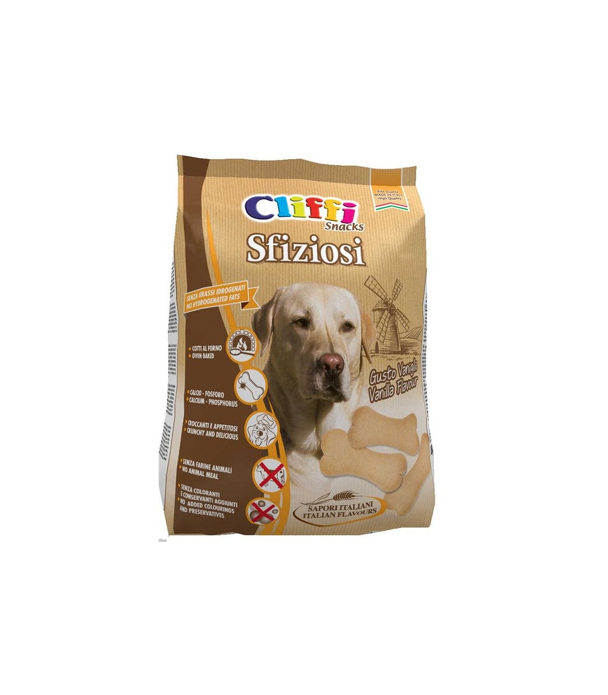 Cliffi sfiziosi snacks 850 gr è un alimento complementare per cani. BISCOTTI CONTENENTI CALCIO - GUSTO VANIGLIA