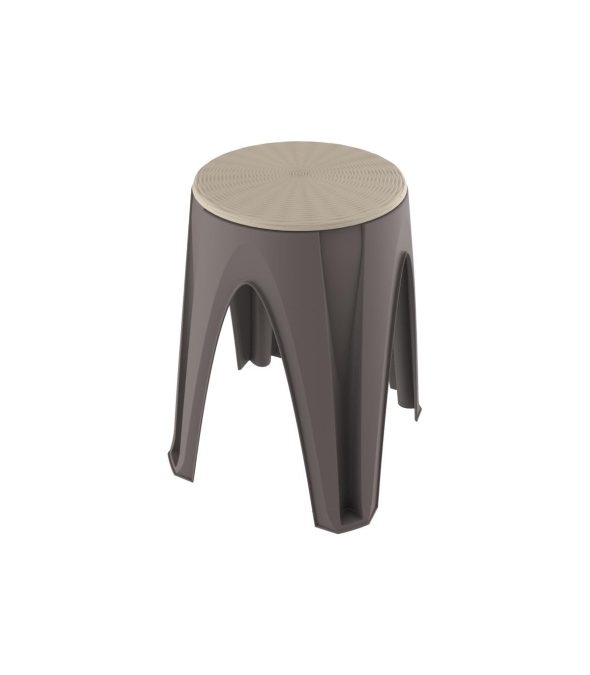 Sgabello in plastica multiuso con seduta ruotante e decoro "paglia". La soluzione ideale per i piccoli spazi, per i luoghi esterni alla casa (giardini e terrazzi).