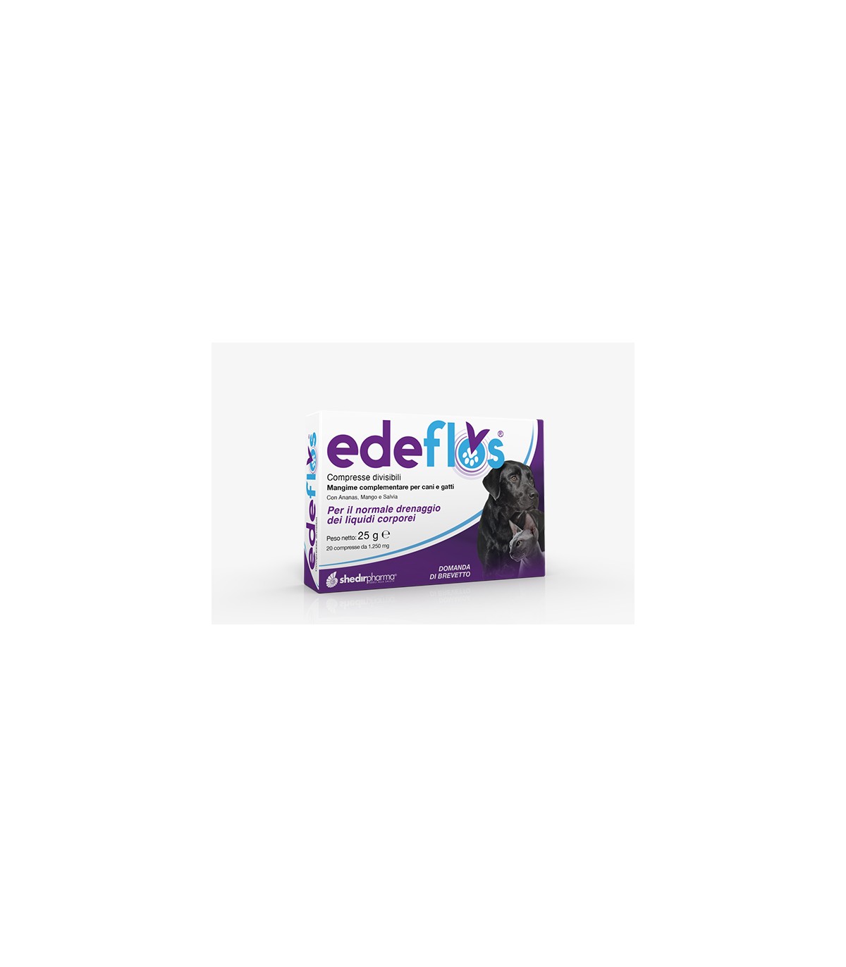 INDICAZIONI D'USO: EDEFLOS® COMPRESSE è un mangime complementare per cani e gatti, formulato in compresse appetibili e divisibili, con Ananas, Mango e Salvia per favorire il normale drenaggio dei liquidi corporei. Alta appetibilità. Facile somministrazione.