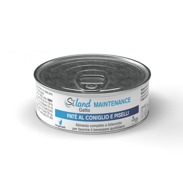 Siland Patè al CONIGLIO e PISELLI: Alimento completo per gatti adulti. Preparato esclusivamente con materie prime selezionate, è un alimento altamente appetibile e digeribile. È privo di conservanti e coloranti aggiunti.