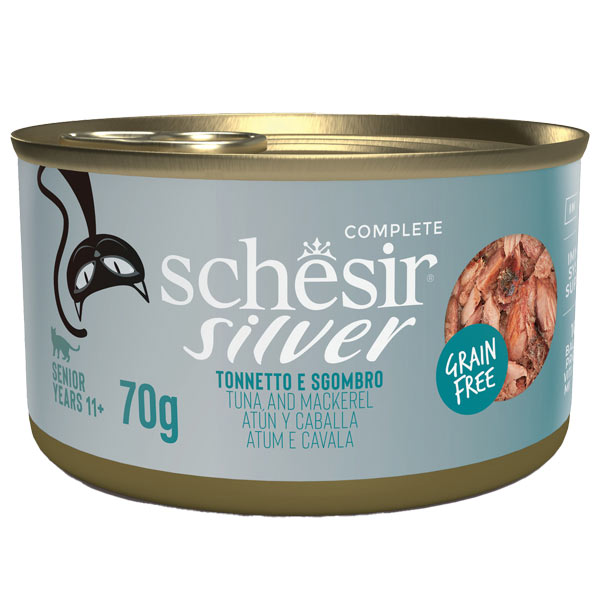 Dagli 11 anni di vita il gatto ha bisogni nutrizionali specifici legati all'et, ed importante che l'alimentazione risponda alle sue esigenze. Schesir Silver la linea di ricette complete e bilanciate per i gatti dagli 11 anni, pensate per supportare il funzionamento del sistema immunitario. A base di proteine da vere carni unite ad altri preziosi ingredienti. Senza cereali.