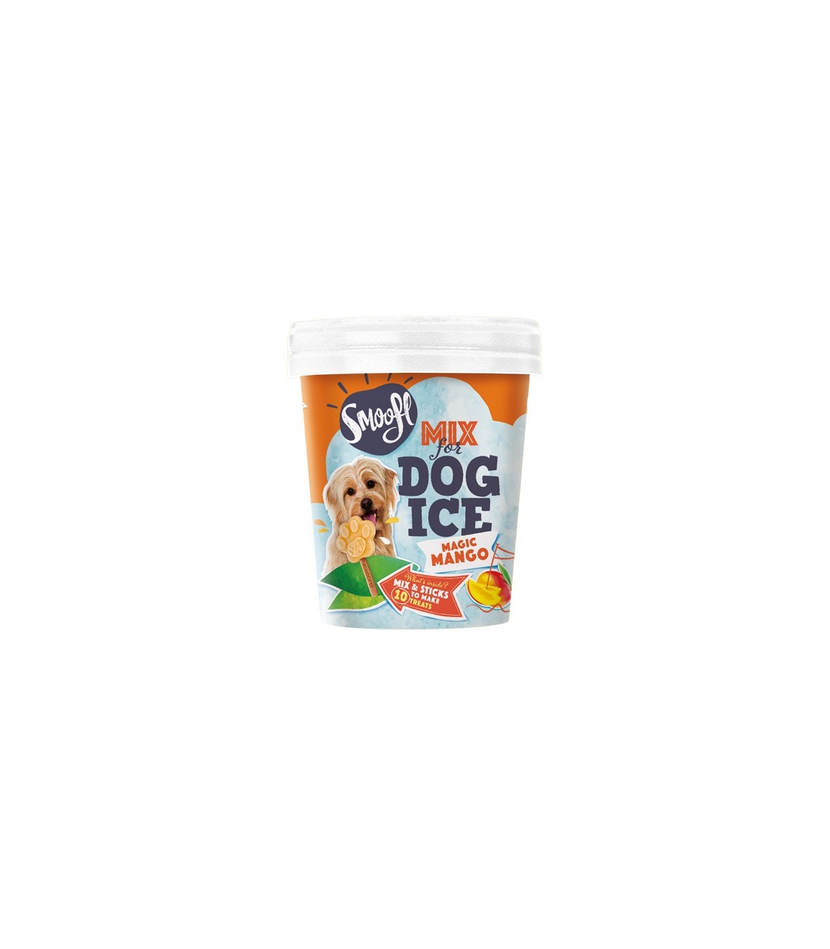 Smoofl gelato per cani gusto Mangoè facile da preparare e pronto in un minuto! Il contenuto della confezione consente di preparare circa 10 snack per cani di taglia piccola e circa 6 per cani di taglia grande. La confezione include 10 stick gustosi da sgranocchiare. Gelato e stick sono senza lattosio, cereali e grassi, adatti a ogni cane. Stampo per gelati non incluso. Solo per uso animale. Vizia il tuo cane con Smoofl gelato per cani gusto Mango!