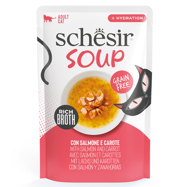 I prodotti complementari Schesir sono l'ideale da abbinare al secco per un mix feeding che fa leva sulla naturalit degli ingredienti: accompagna alle crocchette il sapore di appetitoso salmone e delicate carote, per completare con gusto l'alimentazione del tuo gatto.