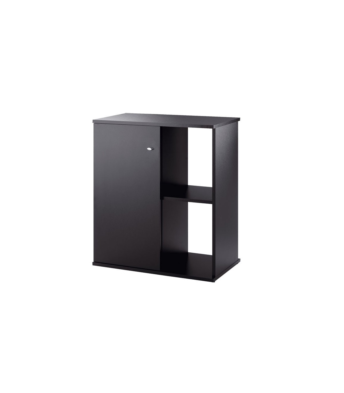 Il mobile per acquari, terrari e tartarughiere in vetro Stand Cayman 60è completo di piedini regolabili in altezza e dotato di un'anta. Robusto, ha una solida base di appoggio e una finitura colore nero. Il piano superiore, se bagnato e prontamente asciugato, si mantiene inalterato nel tempo e resiste ad eventuali gocce d'acqua.