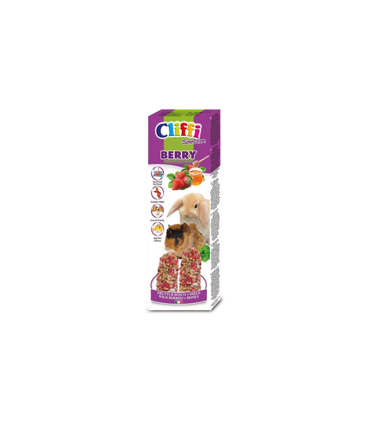 Cliffi sticks conigli - cavie "berry" 110 gr è un alimento complementare per conigli nani e per cavie da compagnia, con frutti di bosco + miele.