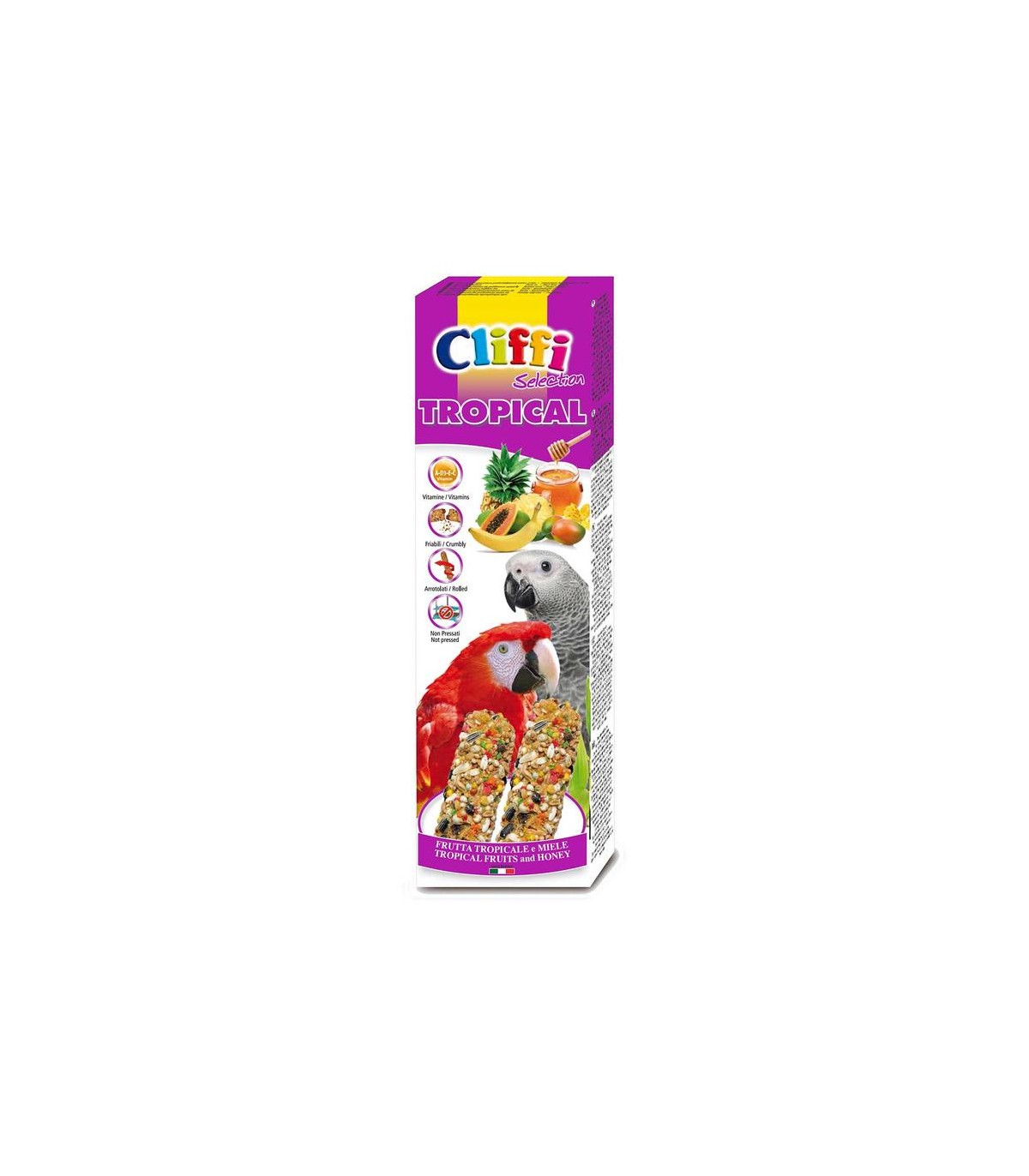 Cliffi sticks pappagalli con frutta tropicale e miele "tropical" 150 grè un alimento completo per pappagalli da compagnia, con frutta tropicale e miele.