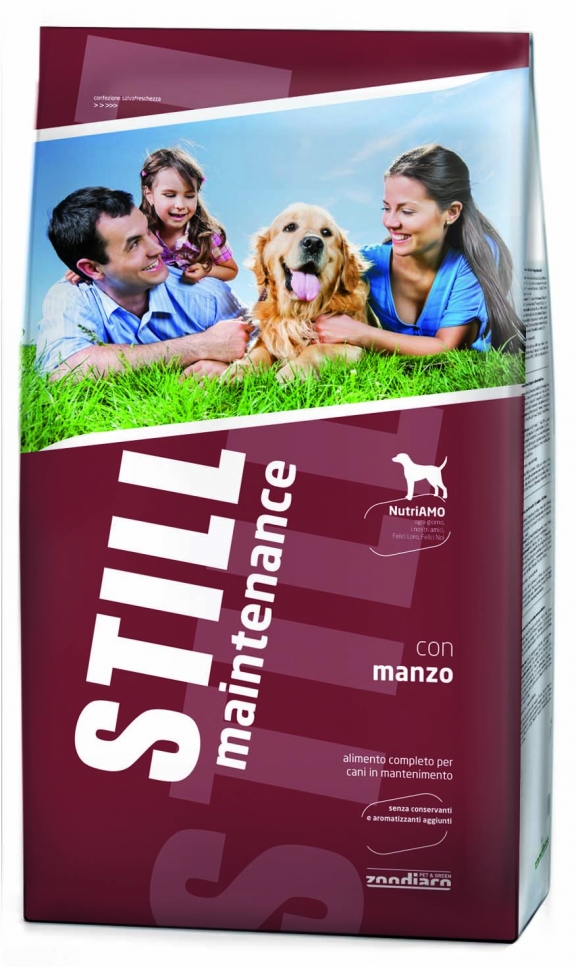 STILL MAINTENANCE è, un alimento completo ideale per tutti i cani che svolgono una normale attività, fisica. Il Manzo, materia prima di elevata qualità,, apporta proteine altamente biodisponibili, utili per mantenere in salute l&rsquo,animale. La completa integrazione vitaminico-minerale favorisce il rafforzamento delle difese immunitarie del cane.