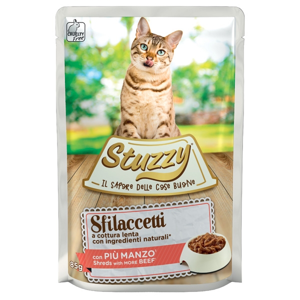 Per il tuo gatto cerchi un alimento completo e gustoso? Con soli ingredienti naturali e una lenta cottura, gli Sfilaccetti con Manzo di Stuzzy sono ricchi di sapore e nutrimento, per regalargli tutto il buono della genuinità.