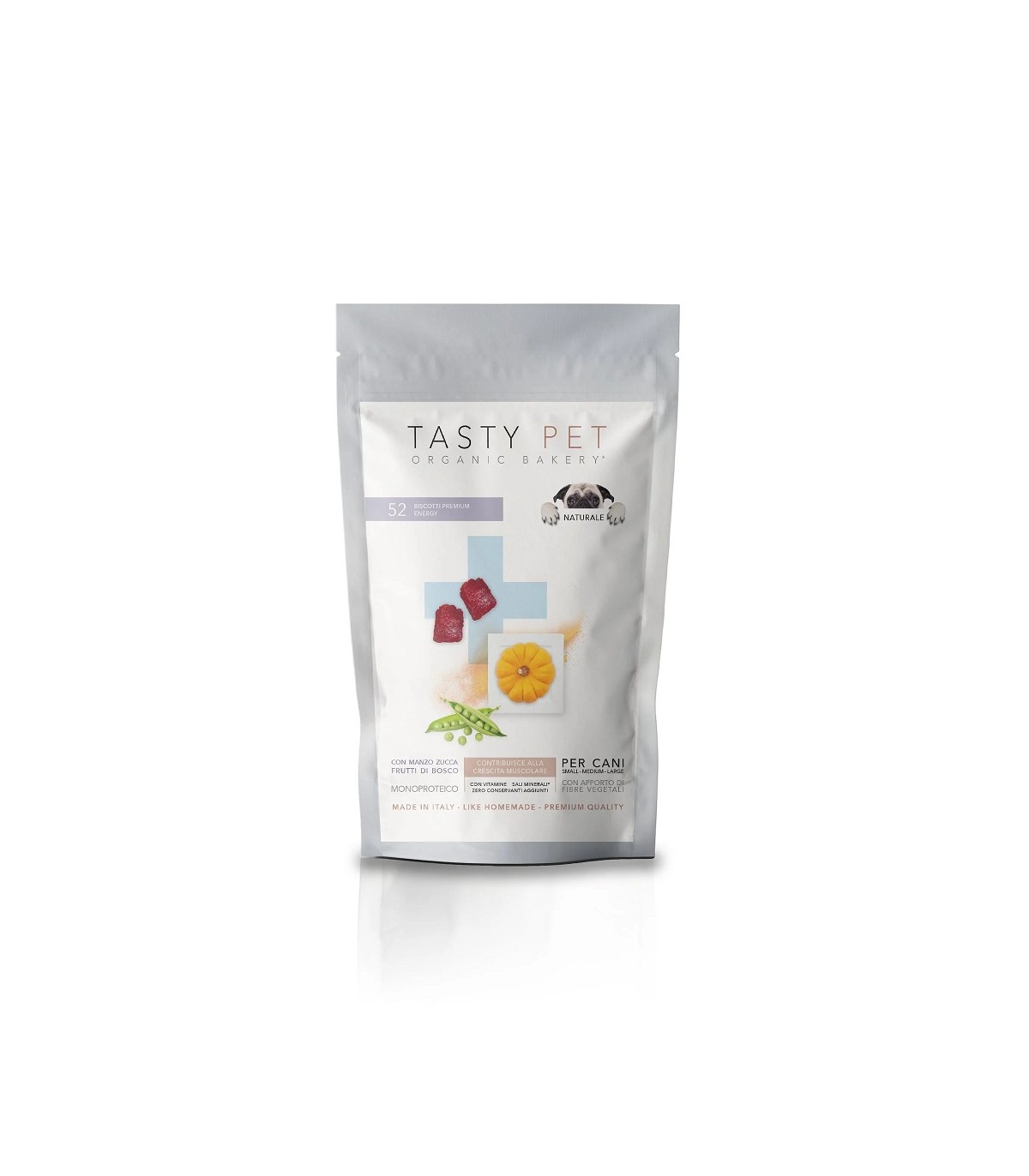 È un biscotto Healthy monoproteico molto nutriente, adatto a tutti i tipi di cane, adulti e cuccioli.
