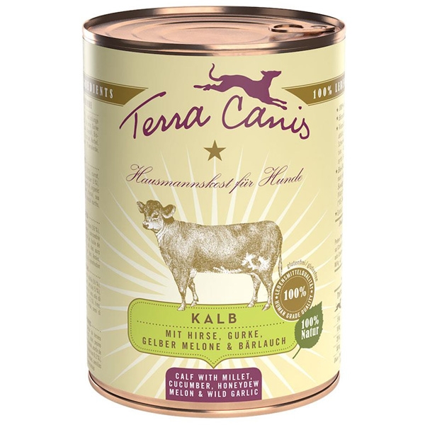 Cibo umido per cani Terra Canis Classic Vitello con miglio, cetriolo, melone giallo e aglio orsino.