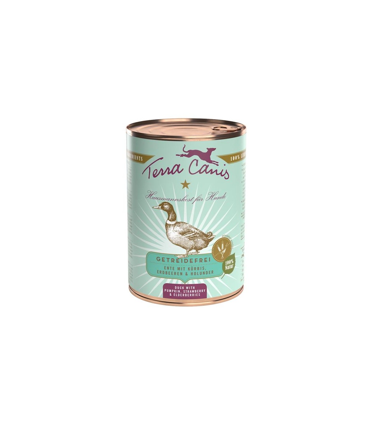 Gli alimenti completi umidi Terra Canis vengono preparati in una macelleria tradizionale di Monaco. Tutti gli ingredienti sono Human Grade al 100%. Tali alimenti completi contengono carne fresca (muscolo) ma anche cuore e fegato (in piccole quantità). Inoltre, ci sono oltre 20 diversi tipi di verdure, frutta ed erbe aromatiche negli alimenti completi Terra Canis Grain Free.