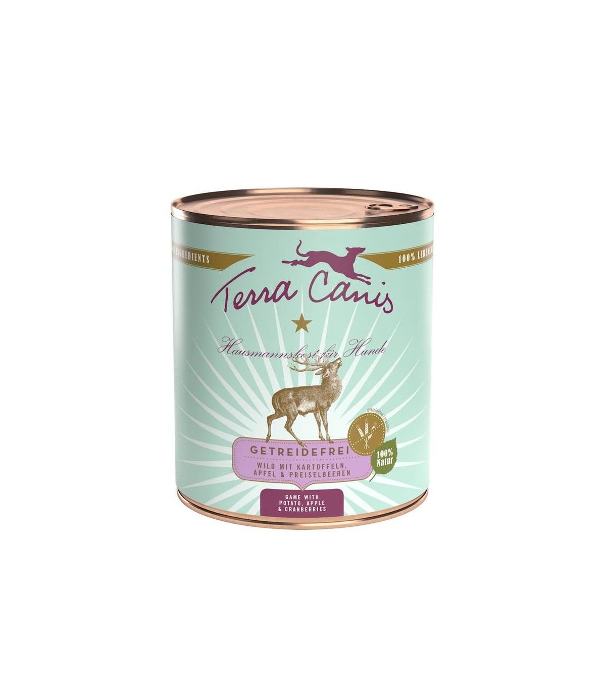 Gli alimenti completi umidi Terra Canis vengono preparati in una macelleria tradizionale di Monaco. Tutti gli ingredienti sono Human Grade al 100%. Tali alimenti completi contengono carne fresca (muscolo) ma anche cuore e fegato (in piccole quantità). Inoltre, ci sono oltre 20 diversi tipi di verdure, frutta ed erbe aromatiche negli alimenti completi Terra Canis Grain Free.