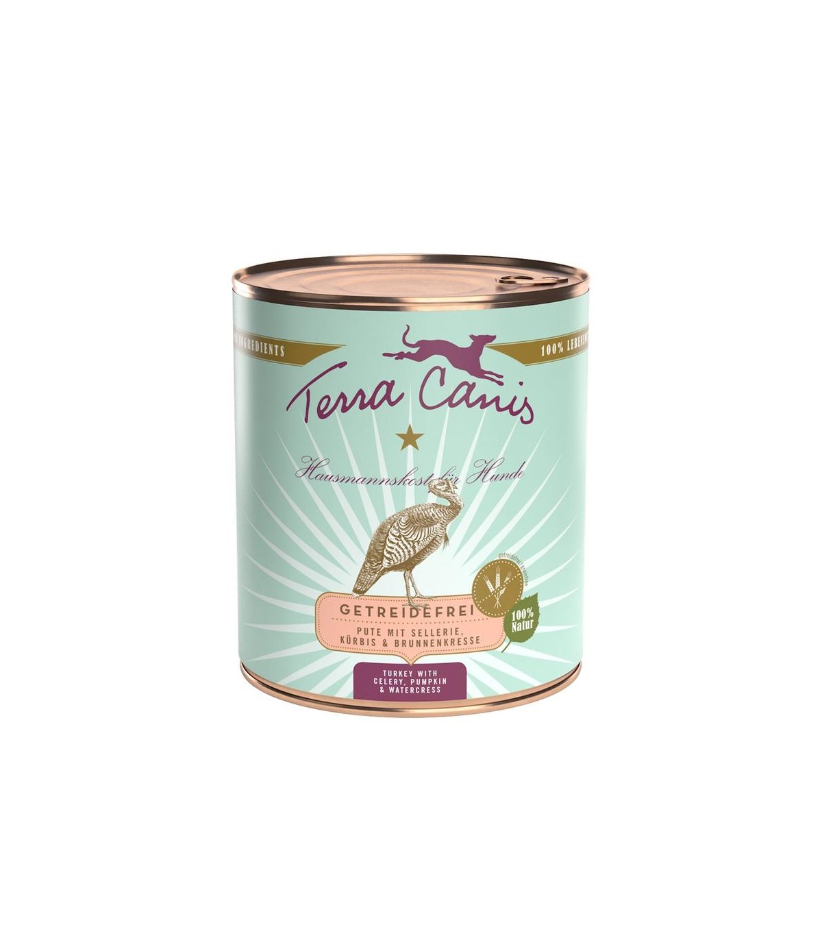 Gli alimenti completi umidi Terra Canis vengono preparati in una macelleria tradizionale di Monaco. Tutti gli ingredienti sono Human Grade al 100%. Tali alimenti completi contengono carne fresca (muscolo) ma anche cuore e fegato (in piccole quantità). Inoltre, ci sono oltre 20 diversi tipi di verdure, frutta ed erbe aromatiche negli alimenti completi Terra Canis Grain Free.