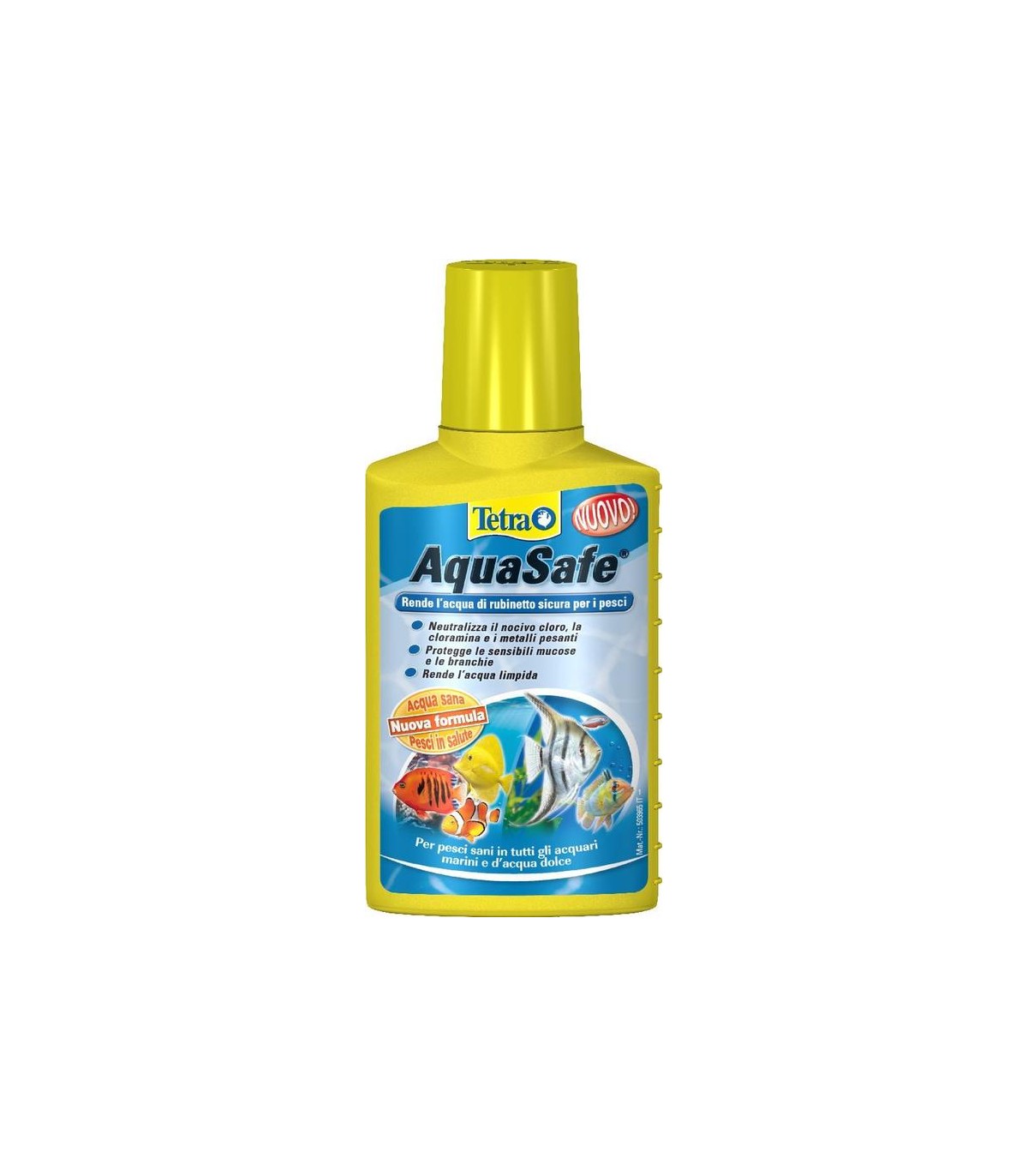 -la nuova formula garantisce acqua sicura e pesci sani grazie all'insieme unico di sostanze protettive altamente efficaci e biopolimeri naturali -neutralizza le sostanze dell'acqua di rubinetto che sono nocive per i pesci: elimina il cloro e si lega stabilmente alla totalità di metalli pesanti come rame, zinco e piombo -aggiunge sostanze essenziali che sono presenti nell'habitat naturale: iodio per la vitalità dei pesci, magnesio per stimolare la crescita e il benessere, vitamina B contro lo stress -protezione efficace di branchie e mucose grazie alla presenza riconoscibile dei colloidi -la formula BioExtract con biopolimeri naturali favorisce la crescita di utili batteri, per un'acqua salubre e cristallina -da usarsi ad ogni aggiunta d'acqua di rubinetto, durante il trasporto dei pesci e durante i trattamenti di quarantena -migliora le condizioni di coltura e favorisce la crescita delle piante -rigenera i pesci dopo un trattamento contro le malattie -per una combinazione ideale con AquaSafe c'è Tetra EasyBalance, che permette di stabilizzare i valori dell'acqua e di ridurre il numero di cambi d'acqua -per acquari d'acqua dolce