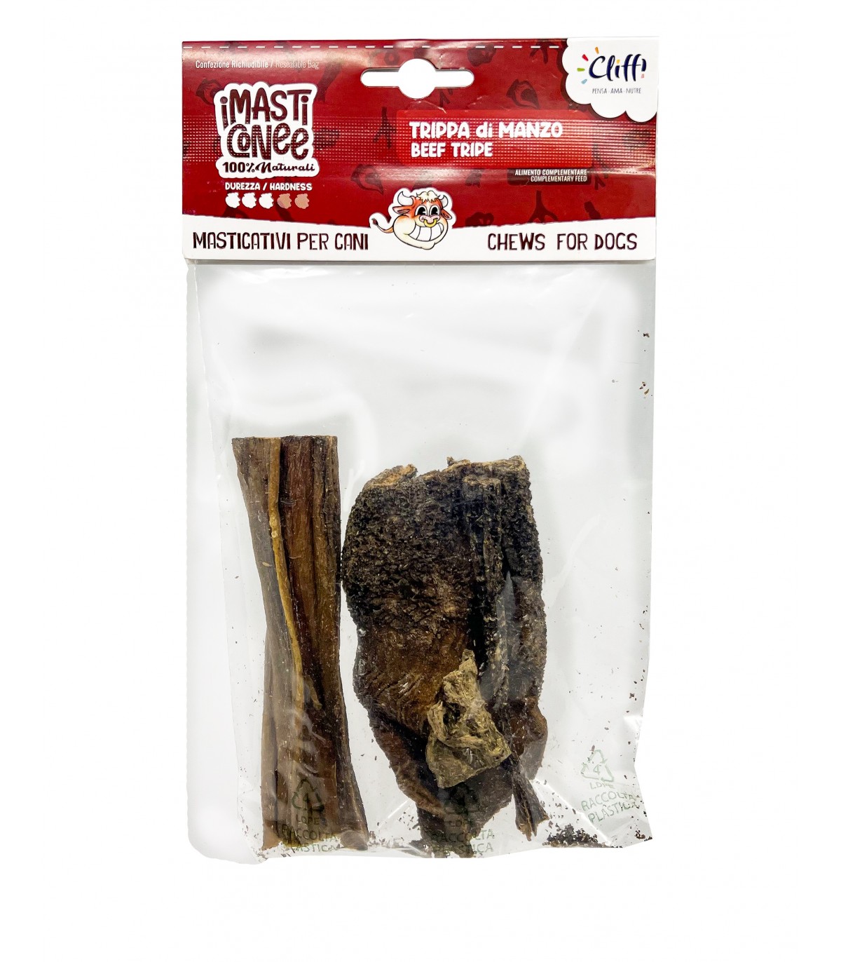 COMPOSIZIONE: Trippa di manzo essiccata. 100% Manzo. Non contiene additivi.