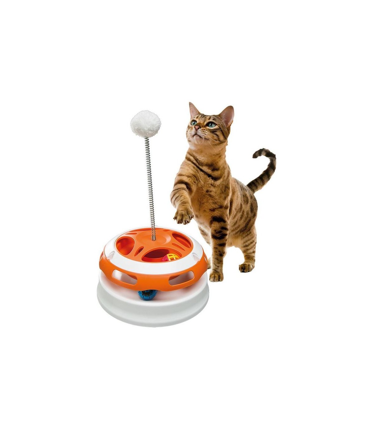 Descrizione Farà divertire un sacco il vostro amico! Vertigo ha una simpatica forma di giostra con asta a molla e pon-pon applicato all'estremità. Alla base un piccolo circuito con due palline, una delle quali con luce Led che si attiva col movimento. La giostra stimolerà la curiosità del vostro gatto aiutandolo così a superare i momenti di noia e rafforzando al contempo la vostra relazione. Assolutamente sicuro,è costruito utilizzando materiali di qualità a garanzia della salute e del benessere del vostro amico. Assieme ad altri prodotti come Tornado, Magic Circle, Typhon e Toboga, Vertigo fa parte della gamma di giochi Clever & Happy di Ferplast: per gatti attivi e felici! Tutti i giochi della linea possono inoltre essere combinati assieme per trovare nuove composizioni e tenere sempre viva l'attenzione del vostro animale. Caratteristiche Gioco per gatti a forma di giostra Dotato di piccolo gioco da afferrare, palline-gioco incluse Dimensioni: \xc3\x98 24 x 36,5 cm