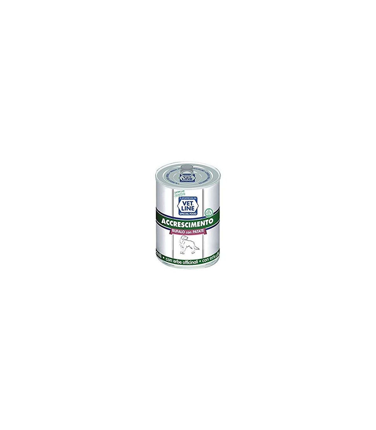 Alimento completo naturale realizzato con carne fresche di bufalo, patate ed erbe officinali attive che ottimizzano il metabolismo del cane in accrescimento.