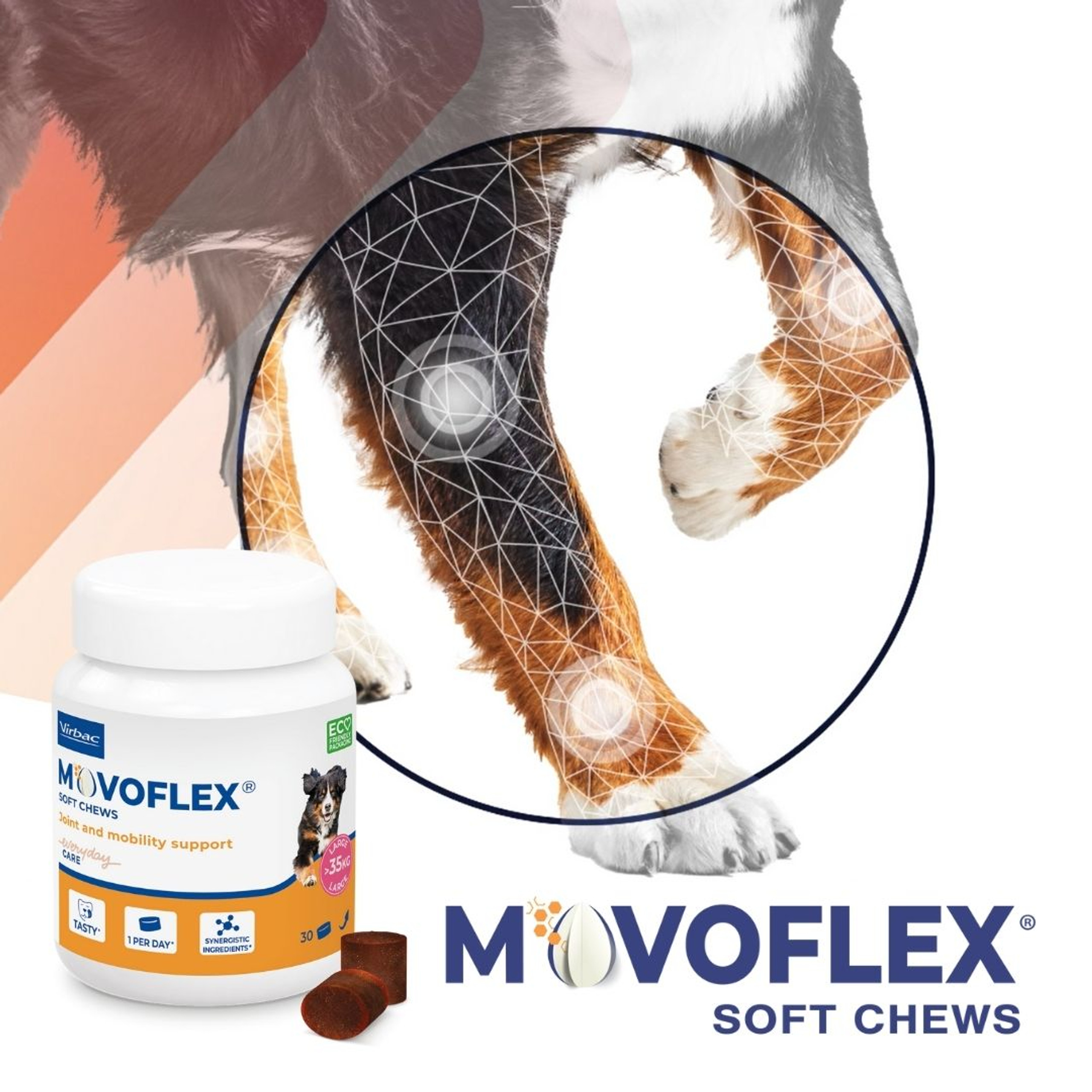 MOVOFLEX® Soft Chews sono disponibili in 3 grandezze differenti, per adattarsi a cani di ogni taglia, età e livello di attività: